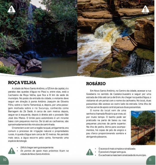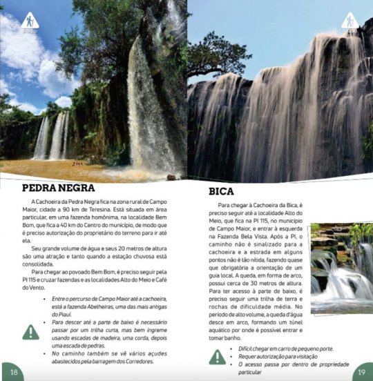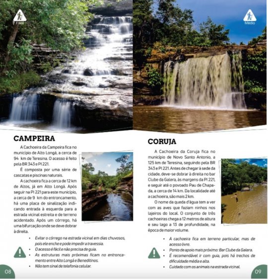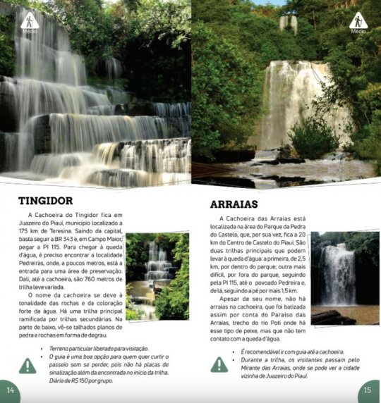 O governo do Piauí divulgou o “Guia Piauí – Cachoeiras”, que traz 18 cachoeiras localizadas em 11 municípios na região Centro-Norte do estado. Cachoeiras de Campo Maior, Jatobá do Piauí, Juazeiro do Piauí, Novo Santo Antonio, Castelo do Piauí e Alto Longá foram incluidas no guia, além de outras já bem conhecidas como a Cachoeira do Urubu, em Esperantina.