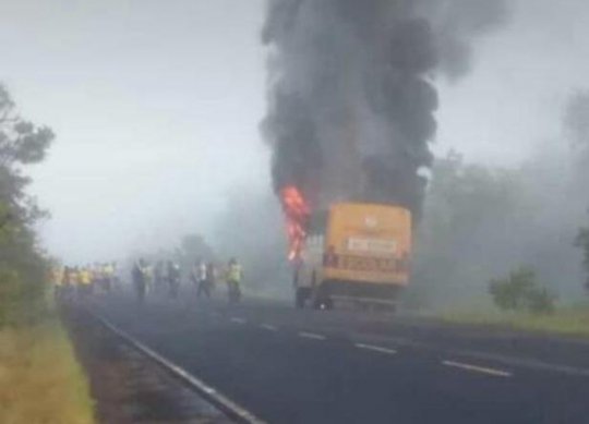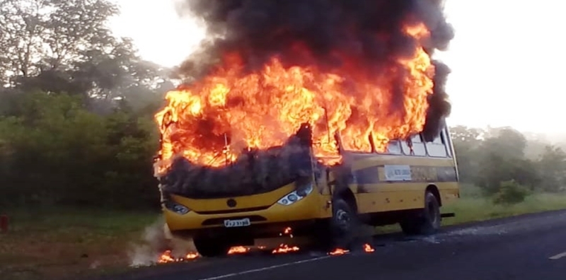 Um ônibus escolar que trazia estudantes da zona rural para estudar em Alto Longá pegou fogo na manhã desta quarta (13/03), na localidade Miguel da Raposa, a 10 quilômetros da zona urbana.
