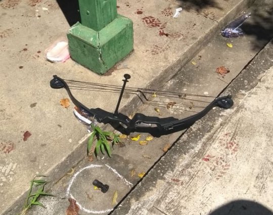 Besta, tipo de arco usado para disparar flechas, encontrado na escola em que o massacre ocorreu