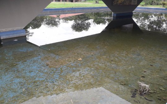 Sem cuidados, o espelho dágua acumula lama, restos de vegetção trazidas pelo vento e até aves mortas