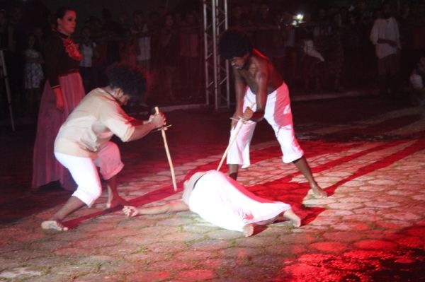 Já quase no final da apresentação, a peça fez homenagem a pessoas, que segundo a organização, lutaram por ideias e, assim como os heróis do jenipapo, ficaram esquecidos. O objetivo foi dar voz a essas pessoas.