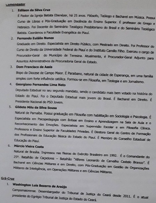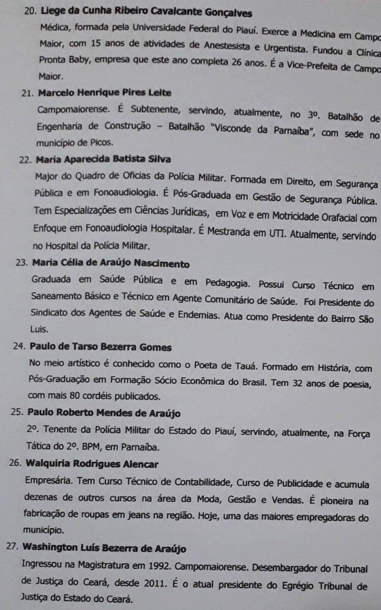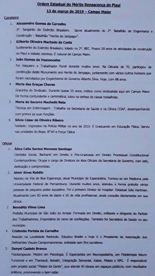 O governo do estado do Piauí homenageou 28 pessoas com a Ordem Estadual do Mérito Renascença do Piauí. A comenda foi criada no governo de Alberto Silva, em 1975 e se destina a agraciar personalidades e entidades que tenham relevantes serviços prestados ao Piauí, tornando-se digno de gratidão.