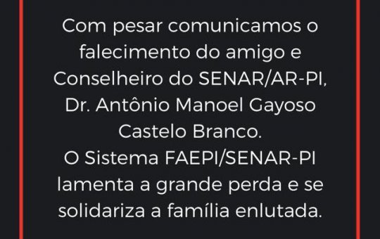 O ex-vereador de Campo Maior Antonio Manoel Gayoso e Almendra Castelo Branco Filho, de 68 anos, morreu na noite dessa quinta-feira (21/03) vítima de uma parada cardiorespiratória. Ele estava internado em um hospital particular de Teresina com agravamento de uma série de problemas que já quase lhe tirou a vida há alguns anos, quando passou 60 dias internado na UTI, depois de uma queda de cavalo na sua fazenda.