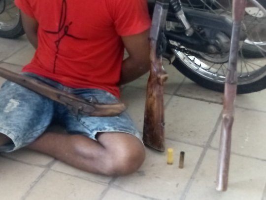 Logo o veículo foi interceptado pela Polícia Militar. Um homem foi preso, com duas espingardas e uma garruncha, e foi autuado pelos crimes e roubo e porte ilegal de arma de fogo. Na avaliação do comandante cabo Silva Neto, foi o fato de um efetivo de policiais na cidade ser pequeno que possibilitou a situação inusitada.