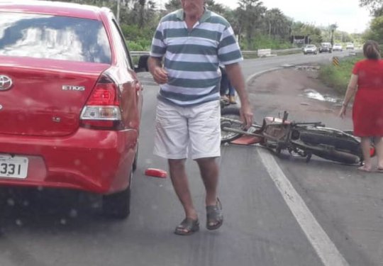 Um homem identificado por Antonio Alves de Oliveira, de 52 anos de idade, ficou gravemente ferido depois de uma colisão do tipo lateral envolvendo uma motocicleta modelo Broz e o veiculo modelo Etios, placa OUD-2331 de Teresina. O acidente aconteceu no km-263 da BR-343, na altura da ponte sobre o rio Longarzinho na saída de Campo Maior no sentido ao litoral.