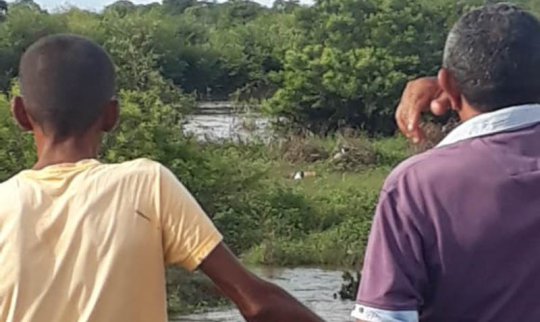 O corpo da mulher foi retirado da água e colcoado numa especie de ilha que o rio Surubim faz no local