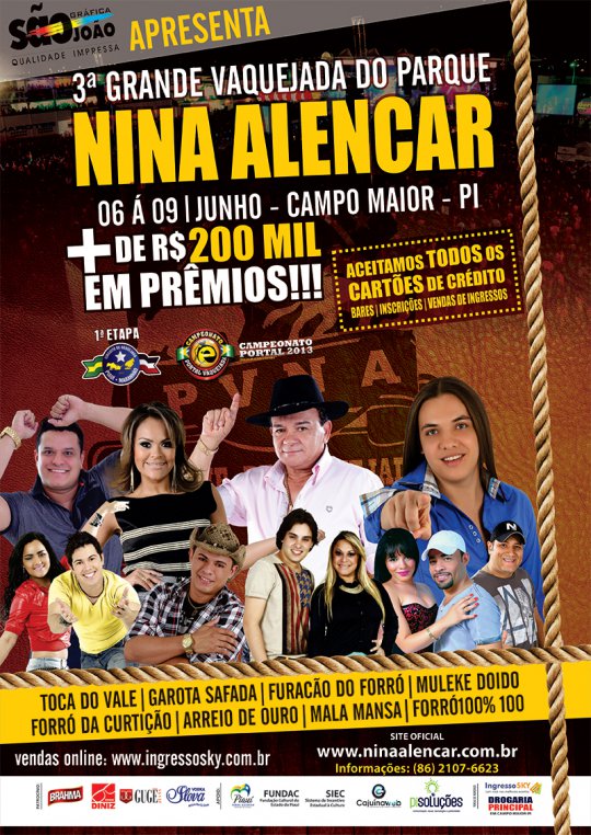 Inaugurado em 2011, Campo Maior presenciou um desfile de artistas a cada ano no Parque Nina Alencar. Weslley Safadão, Aviões do Forró, Márcia Felipe, Chiclete com Banana, Zezé di Camargo e Luciano, Marilia Mendonça, Ávine Vinny, Mano Walter, entre outros, se apresentaram no parque. A premiação da vaquejada chegou a 200 mil reais.