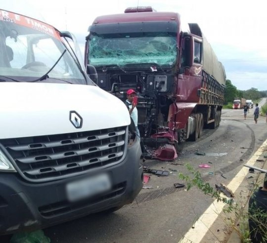 Segundo a Polícia Rodoviária Federal (PRF), a carreta colidiu na lateral da van, que seguia do município de Mirado para a cidade de Timon.