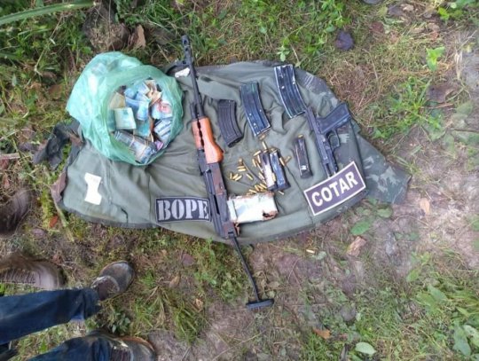 Foram apreendidas fuzil e pistola e parte do dinheiro.