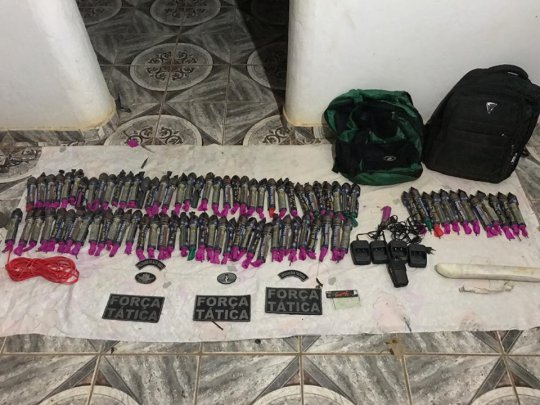 Após a prisão, as equipes retornaram a localidade Sítio Velho, onde encontraram no entorno da propriedade explosivos, rádio comunicador, cordel detonante e rojões onde os criminosos retiravam a pólvora para montagem do explosivo.