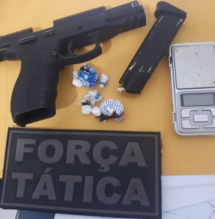 Após alguns minutos de procura a guarnição encontrou a arma e as 16 munições, em uma das buscas realizadas na procura do indivíduo foi apreendido várias porções de cocaína e dinheiro trocado.