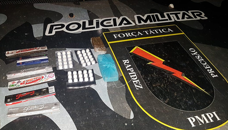 A equipe Alfa da Força Tática do 20º Batalhão de Polícia Militar de Paulistana, em blitz na madrugada deste domingo (19), por volta das 2h30, no Posto Fiscal de Pipocas, cerca de 35 km da sede do Batalhão, apreendeu dois tabletes de maconha e anfetaminas.