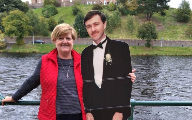 Michelle Bourke, de 58 anos, viaja pelo mundo com um pedaço de papelão do seu falecido marido para honrar a promessa de que iriam viajar juntos. A viúva encomendou uma imagem em tamanho real de Paul Bourke, baseada em uma fotografia de seu casamento há quase 30 anos, após sua morte por câncer aos 61 anos em 2016.