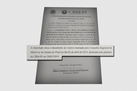 O Conselho Regional de Medicina do Piauí (CRM-PI) realizou, na tarde desta segunda-feira (3), a interdição ética total da Maternidade Sigefredo Pacheco, em Campo Maior, Norte do estado. De acordo com a entidade, faltam equipamentos e medicamentos essenciais, e as escalas médicas estão incompletas.