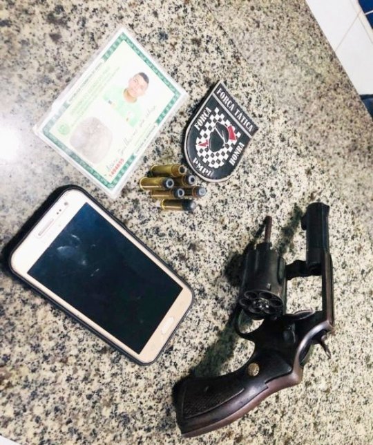 Icaro foi encaminhado para a Central de Flagrantes, juntamente com o celular roubado e uma arma de fogo.