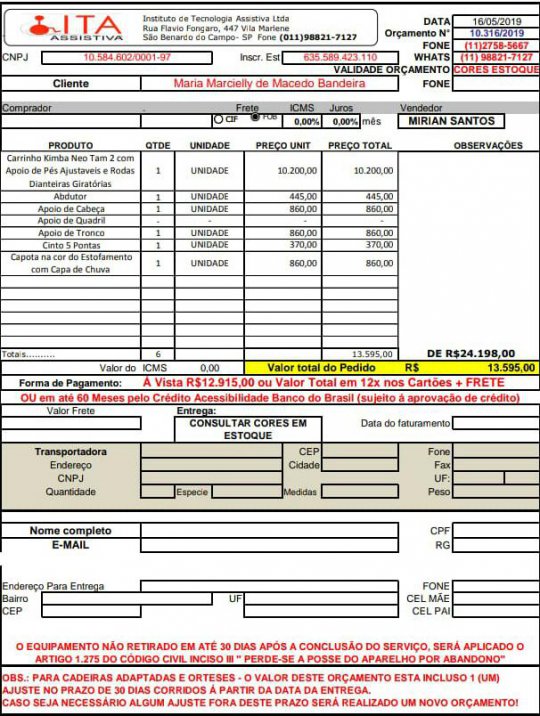 Infelizmente o SUS não fornece o material que Marcielly precisa, mas a Secretaria de Saúde de Campo Maior está colaborando com o que é de mais necessário.