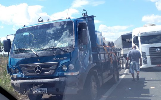 O motorista do Sandero, aparentando ter entre 40 e 45 anos de idade, ficou preso nas ferragens do veículo. O homem pode ser representante comercial, pois tinha várias mercadorias no carro.