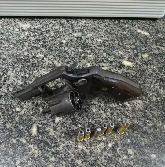 Ainda durante a varredura, os policiais depois perceberam que a companheira de Batista estava com um revólver calibre 38 de 05 tiros municiado com 05 munições intactas. Logo após, conduziram-na para a delegacia para providências em que o caso requer.