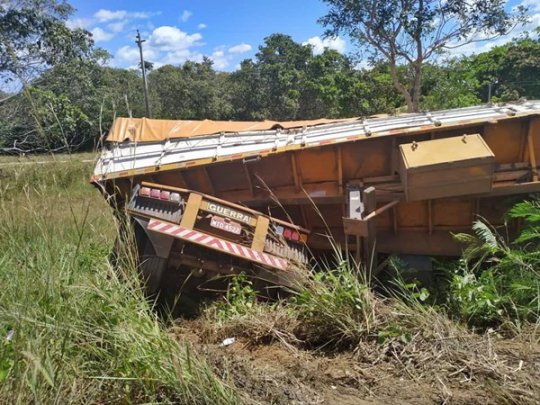 De acordo com os agentes, o veículo, que estava transportando agrotóxico, saiu da pista após um dos semirreboques se soltar possivelmente por falha mecânica jogando o conjunto pra fora da rodovia. Não houve dano a carga e a PRF aguarda o seguro ambiental que já foi acionado para a remoção do produto.