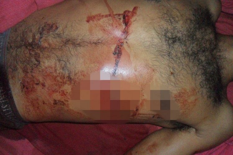 As pessoas que presenciaram o fato amarraram o acusado, que estava visivelmente embriagado e não esboçou reação e depois telefonaram para a polícia. A vítima continuava viva.