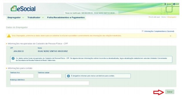 Segundo a Receita, isso acontece porque o primeiro passo é fazer o cadastro como empregador para, depois, fazer o registro do empregado.
