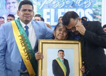 Filho de prefeito assassinado se emociona ao tomar posse em Madeiro (PI)