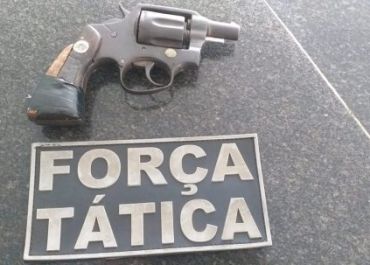 A equipe da Força Tática deu voz de prisão ao homem e o conduziu para responder pelo crime de porte ilegal de arma de fogo.