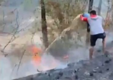 Vídeos que circulam nas redes sociais mostram o momento em que populares tentam controlar o fogo. O caso aconteceu na tarde dessa quarta-feira (15).