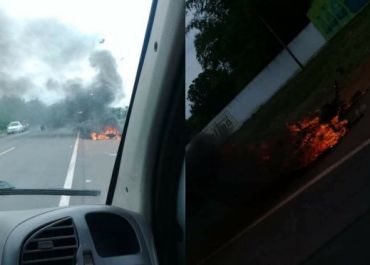 A motocicleta pegou foco após a colisão