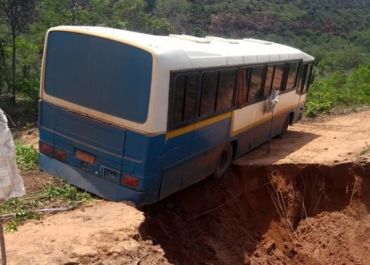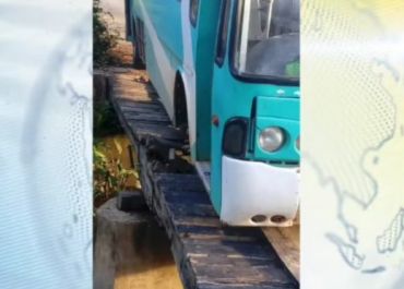 O caso aconteceu na cidade de Amarante-PI, uma das rodas do ônibus ficou presa na ponte de madeira.