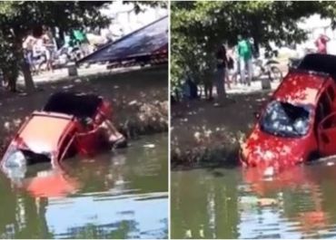 Mulher perde controle de veículo e cai dentro de canal em Teresina