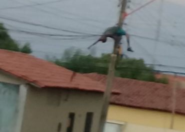 Homem desmaia ao sofrer descarga em poste, acorda e vai embora em moto