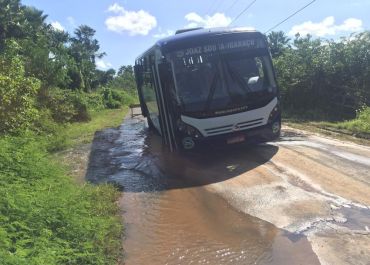 Asfalto afunda e ônibus alternativo cai em buraco em avenida de Parnaíba