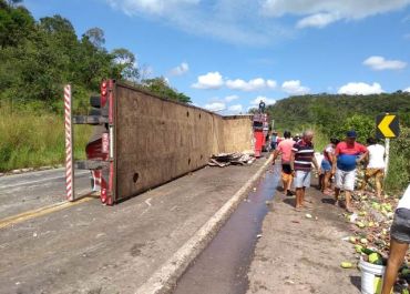 Carreta com verduras tomba na BR-343 entre Altos e Campo Maior e tem mercadoria saqueada
