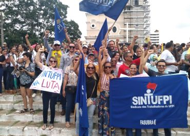 Estudantes protestam contra bloqueio de verbas no centro de Teresina