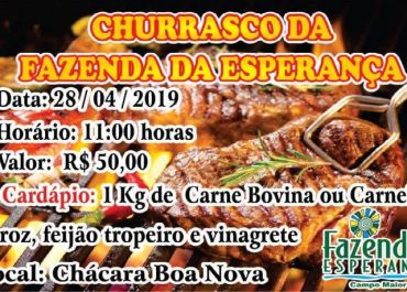 Fazenda da Esperança promove churrasco beneficente nesse domingo em Campo Maior