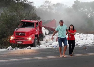 Caminhão carregado de açúcar tomba na BR-343 entre Campo Maior e Altos