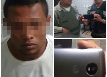 Após diligências, os policias localizaram o suspeito com um dos aparelhos tomados de assalto