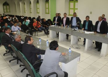 Em grande número, reunidos na praça da prefeitura, os servidores foram mobilizados pelos Sindicatos