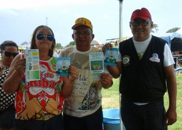 Orientam os banhistas como proceder no momento de fazer o deposito correto do lixo produzido no Balneário Surubim