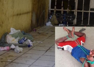 Além do episódio do suspeito preso, amarrado com uma corda por falta de uma algema, a situação das celas do distrito policial são precárias de divide opinião.