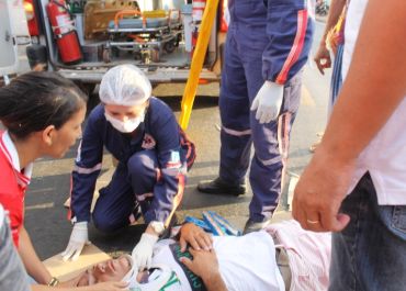 Acordado, motociclista disse que teria batido no fundo de uma carreta. O motorista não parou para prestar socorro a vítima.