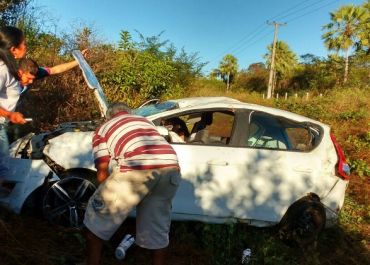 O veículo ficou parcialmente destruído enquanto os jovens saíram com ferimentos leves