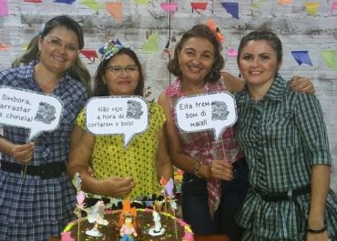 Logo após a entrega de lembranças aos aniversariantes, teve o corte do bolo, houve também sorteios de brindes