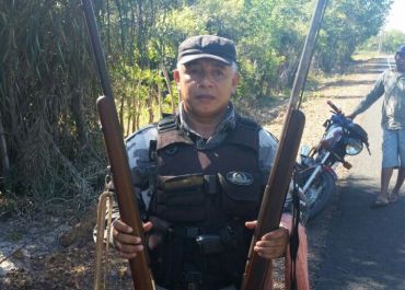 As armas foram encontradas durante abordagens na cidade de Boa Hora. Já a motocicleta, CG 150, foi encontrada em Boqueirão