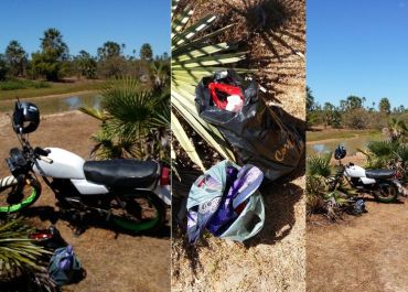 Próximo a moto foi encontrado sacolas com roupas e utensílios de uso pessoal.