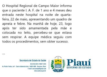 Sesapi esclareceu que a equipe médica foi acionada para tentar reanimar a criança, mas quando chegou não deu mais tempo reanimá-la.