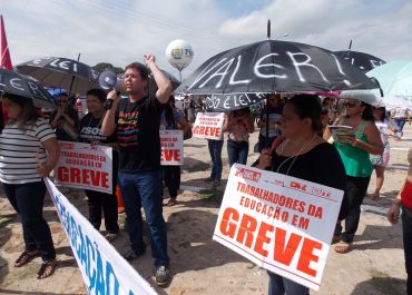 Os grevistas acompanharam a solenidade com faixas, palavras de ordem e vaias.