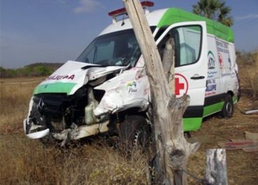 A colisão foi lateral e a ambulância foi parar a mais de 100 metros do local, enquanto a carreta ficou tombada na pista.