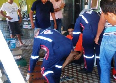 O homem teria tocado em uma das placas, o que provou a queda das várias peças de vidro sobre seus membros inferiores.